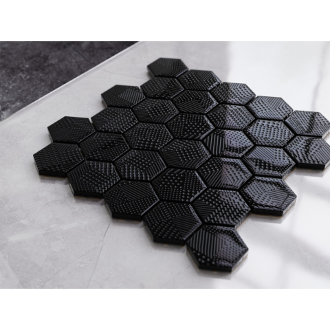 Üvegmozaik hatszög - a geometrikus világ szépsége. A hatszögletű mozaik kollekció egy univerzális és divatos méhsejt alakú, gyönyörű és időtlen színekkel díszített üvegmozaik. Paraméterek: 1 teljes tábla: 27,1 x 28,2cm 1 kocka: 4,6 x 5,2cm 1m2: 14 tábla