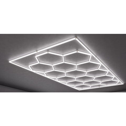 1 kép Hexa LED hatszögletű lámpa mennyezeti panel világítás garázsműhelyhez 484 x 243 cm