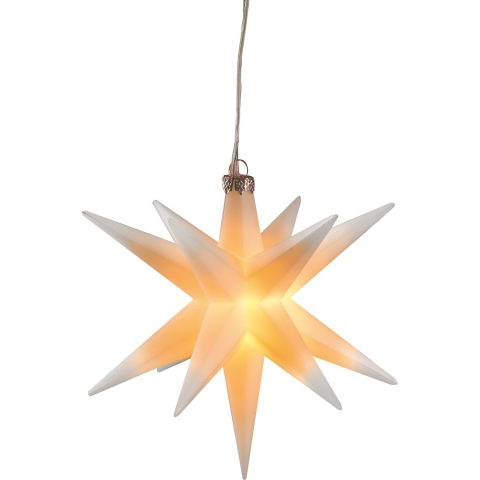 A LED-világítással ellátott és különböző színekben kapható 14-ágú csillag karácsonyi hangulatot teremt a lakóterületen. Az összképet az integrált elemtartóval ellátott elegáns akasztó teszi teljessé. A csillag átmérője kb. 12 cm, melynek köszönhetően egyszerűen használható girlandok, karácsonyfa vagy karácsonyi virágdíszek dekorálásához. A világító dekorációs csillag integrált időzítő funkcióval rendelkezik, melynek köszönhetően 6 órás üzem