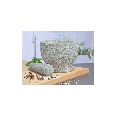 Hi Gránit mozsár 15*11 cm fekete-szürke 14074 - Masszív, tömör, valódi gránitból készült mozsár mozsártörõvel - Használható zöldfûszerek , szárazfûszerek, magvak, gyógyszerek, dió, mandula, mogyoró, pisztácia zúzására, finomítására - Mosogatógépben mosható - Méret: 15x11cm - Szín: fekete/szürke
