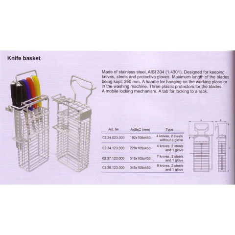 Vastag rozsdamentes acélból készült higiéniai késtartó rács, kifejezetten igényesebbeknek. A késtartó zárható kivitelben készül, melyben elfér : 10db kés valamint 2db fenőacél is, továbbá 1 db lánckesztyű. Erősített kivitel, fejre fordítva se esnek ki a