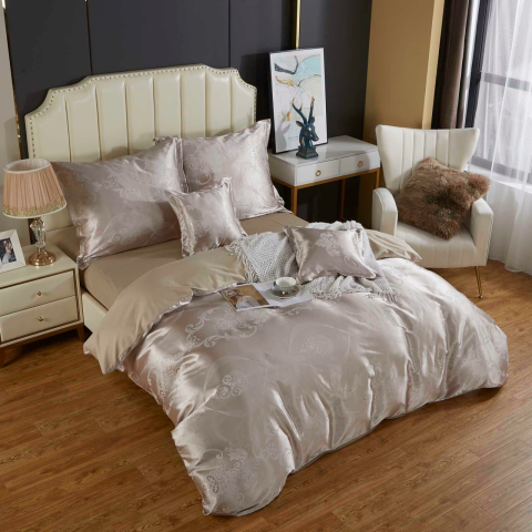 Teljes Hímzett szatén ágynemű 220x200 bézs AT015 termékleírás
