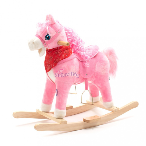 Aranyos hintaló piros sállal a nyakán. A füle megnyomása után a lovacska mozgatja a farkát és a száját, hangokat ad ki, vagy dallamokat játszik. Puha anyagból készült, ezért a gyermekek sokáig élvezhetik a szórakozást. A hintaló nyereggel, kantárral és fa
