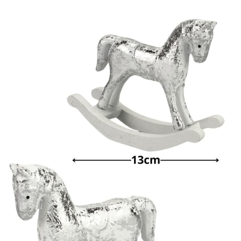 Fából készített díszes hintaló, festett dekor kiegészítő és dekorációs elem. Méretek: mag: 11cm, hossz: 13cm, szél: 4,5cm