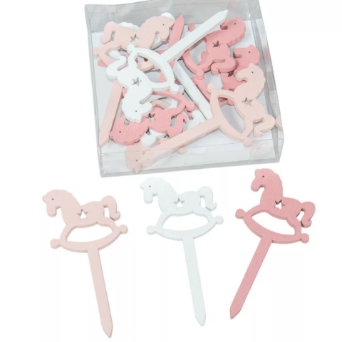 1 kép Hintaló leszúrható rózsaszín-fehér 8cm 12db-os csomag