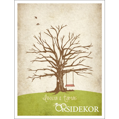 Nosztalgikus hangulatot idéző ujjlenyomatfa hintával. Elsősorban friss házasoknak ajánljuk esküvőre alternatív vendégkönyvként, szülőknek, nagyszülőknek házassági évfordulóra a család ujjlenyomataival, vagy a párodnak születésnapj