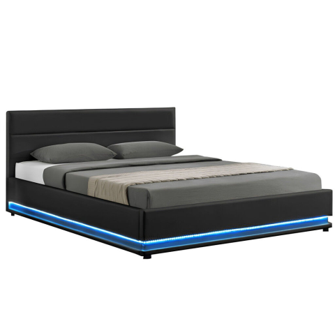 Hitvesiágy fehér világítással, fekete, 180x200, BIRGET NEW