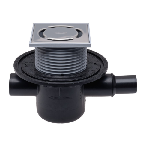 1 kép HL 300 padlószifon vízszintes kimenettel, 150x150mm ráccsal, 50mm vízzárral