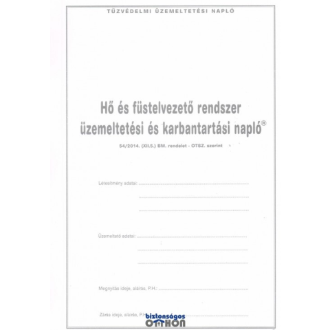 Hő és füstelvezető rendszer üzemeltetési és karbantartási napló