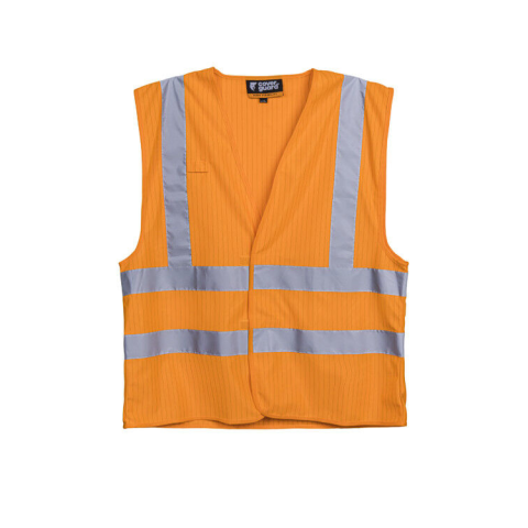 HODER HI-VÍZ NARANCS MULTIRISK MELLÉNY_L/XL 98% poliészter + 2% antisztatikus szál - 120 g/m2 vastag 4 lángálló FR fényvisszaverő csík A mellény szélessége állítható