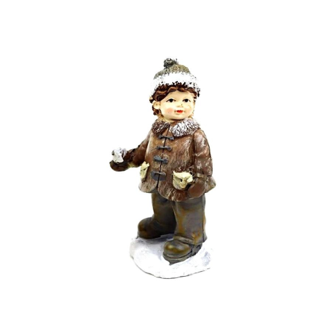 Bájos kisfiú figura, kezében tartja a hógolyót. Karácsonyi-téli alkotások varázslatos kiegészítője, de önmagában is tökéletes dekoráció.
