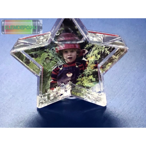 Hógömb fotógömb csillag könnyen csrélhető kép ezüst csillagos havazás mérete:10cm x 10cm anaga: plexi