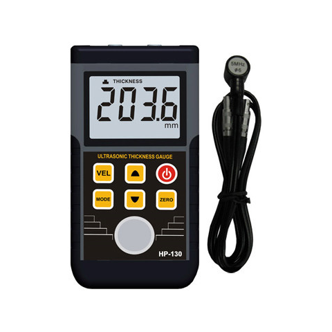Digitális, ultrahangos anyagvastagság mérő, 1.2-225mm, külső mérőszonda, adattárolás. Különböző anyagok vastagságának meghatározására alkalmas, ultrahangos mérőműszer. Acél, alumínium, vörösréz, sárgaréz, cink, kvarcüveg, polietilén, PVC anyagokhoz has