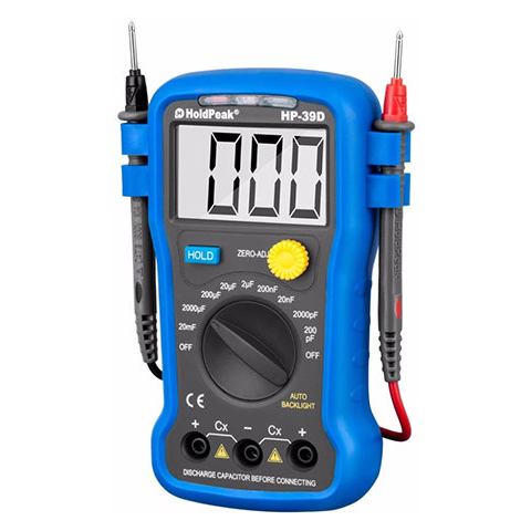 Digitális multiméter, kapacitás, csuklópánt, mérővezetékek. - Digitális multiméter. - Nagyméretű kijelző. - Stabil teljesítmény. - Könnyen hordozható. - Kapacitás mérési tartomány: 200pF - 20mF. - Maximális értékkijelzés: 1999. - Automatikus méréshatár