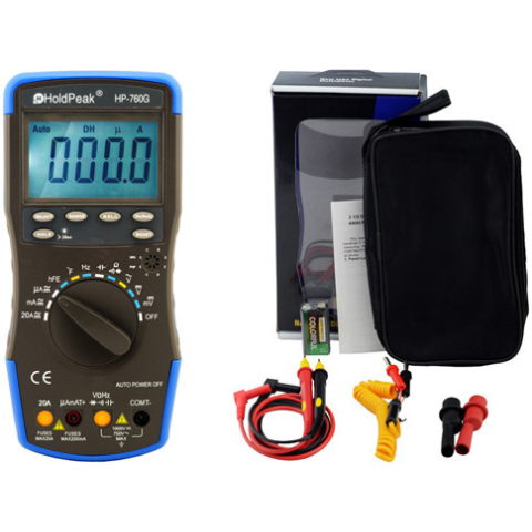 Digitális multiméter, VDC,VAC,ADC,AAC,frekvencia,kapacitás,hőmérséklet,hFE,dióda,szakadás. Univerzális, digitális mérőműszer. A méréshatárok manuálisan állíthatók be. A nagy LCD kijelzőről könnyen leolvashatók a mért adatok. Egyenfeszültség, egyenáram,