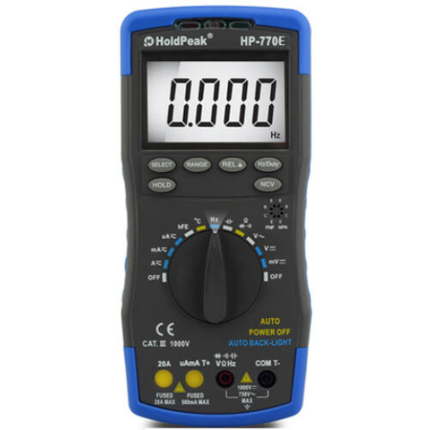 Univerzális, nagy pontosságú, digitális multiméter. Egyenfeszültség, váltófeszültség, egyenáram, váltóáram, ellenállás, kapacitás, hőmérséklet és frekvencia mérésére alkalmas.További szolgáltatása a dióda tesztelő, hFE és szakadásjelző funkció. Funkciókapcsoló jelzőlámpával és mechanikus blokkoló rendszerrel rendelkezik. Lehetőség van oszlopdiagramos kijelzésre. True RMS műszer, ezért mindig a pontos effektív értéket jeleníti meg.