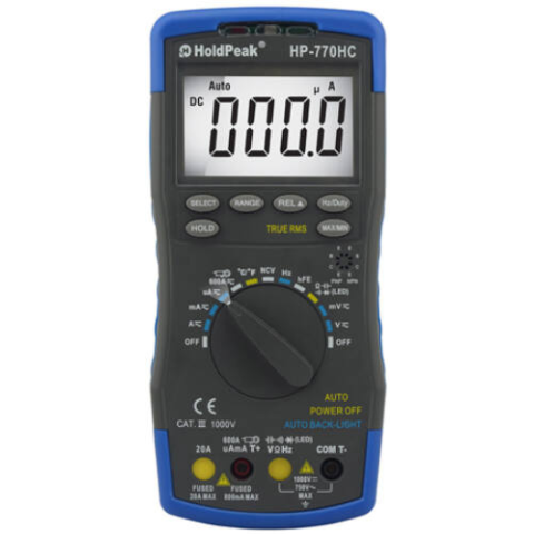 Univerzális, digitális multiméter. Egyenfeszültség, váltófeszültség, egyenáram, váltóáram, ellenállás, kapacitás, hőmérséklet és frekvencia mérésére alkalmas.További szolgáltatása a dióda tesztelő, hFE és szakadásjelző funkció. Funkciókapcsoló jelzőlámpával és mechanikus blokkoló rendszerrel rendelkezik. True RMS műszer, ezért mindig a pontos effektív értéket jeleníti meg.