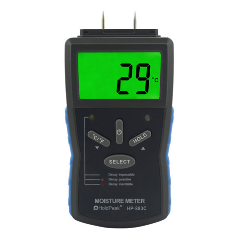 Univerzális, digitális nedvességmérő, 6-42%, beépített mérőcsúcs, hord táska. Univerzálisan használható nedvesség mérőműszer. Többek között fa, szálas takarmány és szövet nedvesség ellenőrzésére alkalmas. A mért eredmények jól látható LCD kijelzőről ol