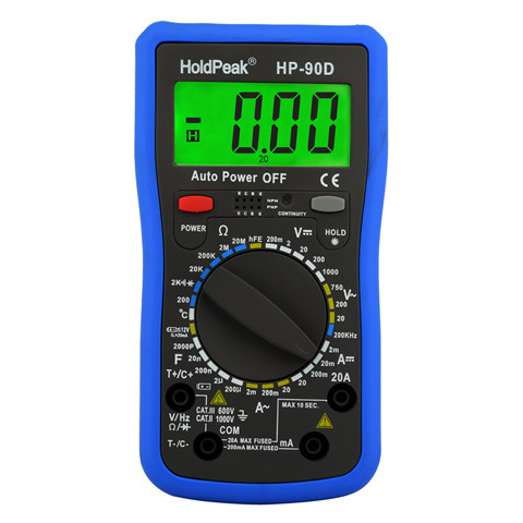 Digitális multiméter,VDC,VAC,ADC,AAC,ellenállás,kapacitás,hőmérséklet,frekvencia,hFE. Számos elektromos mértékegység mérésére alkalmas, digitális, nagy LCD kijelzős multiméter. Kisméretű, könnyen hordozható eszköz. Egyenfeszültség, egyenáram, váltófesz
