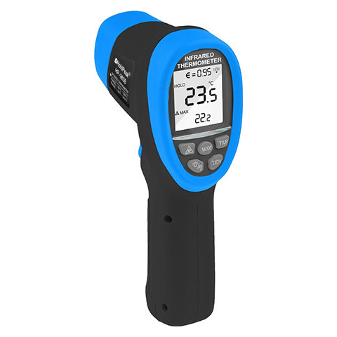 Dupla lézeres hőmérsékletmérő műszer, -50°C - +1360°C, LCD. - Dupla lézeres hőmérsékletmérő műszer. - Pisztoly kialakítás. - Távolság/tárgy optikai tényező: 16:1. - LCD kijelző, kapcsolható háttérfénnyel. - Adattárolás funkció. - Minimum/maximum érték