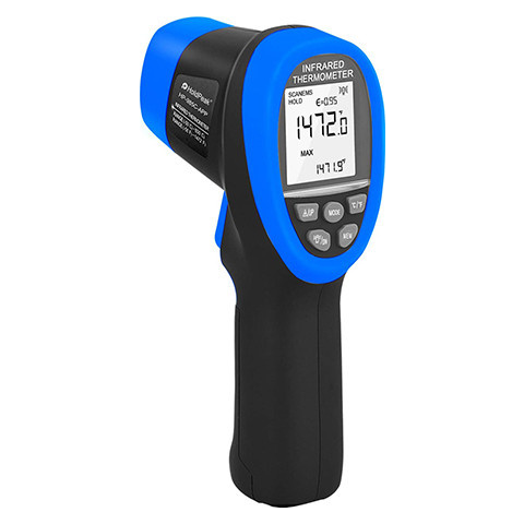 Lézeres hőmérsékletmérő műszer, -50°C - +800°C, Bluetooth, LCD. - Lézeres hőmérsékletmérő műszer. - Pisztoly kialakítás. - Távolság/tárgy optikai tényező: 16:1. - LCD kijelző, kapcsolható háttérfénnyel. - Adattárolás funkció. - Minimum/maximum érték me