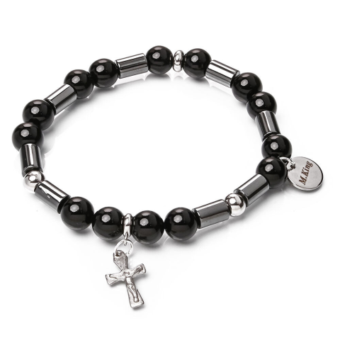 1 kép Holy Ground – Hematit és ónix ásvány karkötő Kereszt charmmal vagy anélkül, dobozban
