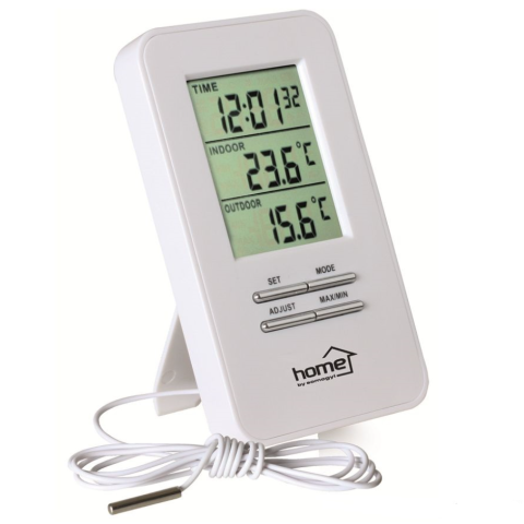 Terméktulajdonságok: - beltéri egység mérete: 7,3 x 12,3 x 2,2 cm - beltéri egység kijelzőjének mérete: 4,1 x 5,3 cm - 12/24 időformátum - ébresztések száma: 1 - tápellátás: 2 x (AAA) elem (nem tartozék) - érintőképernyő: nincs - háttérvilágítás: nincs -