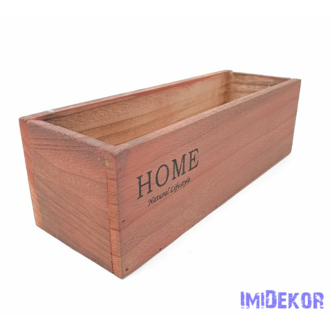 Home feliratos tégla fa kaspó - Világos barnás dekorációs kellék 1 kép