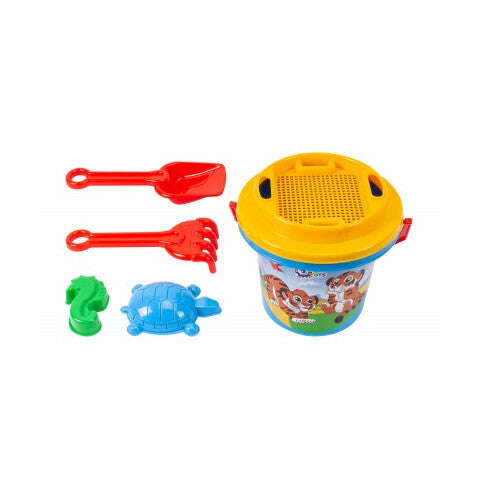 Homokkészlet, vödör matricával és tartozékokkal homokozójáték 1 kép
