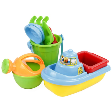 Építs homokvárakat, vagy úsztasd a kishajót! A Homokozó 9 darabos készlet kishajóval műanyagból készült bástyás homokozó vödröt, kannát, szitát, lapátot, gereblyét és homokozó formát tartalmaz, egy színes műanyag kishajóval. A játékokat a homokozóban,