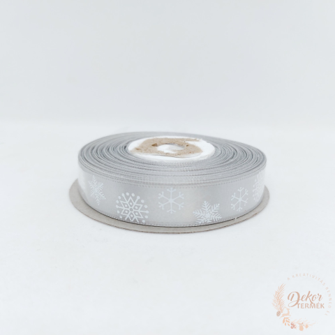 1 kép    Hópehely mintás szatén szalag - 1,5 cm - szürke