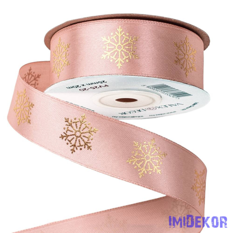 Hópehely mintás szatén szalag 25mm x 20m - Púder Bézs