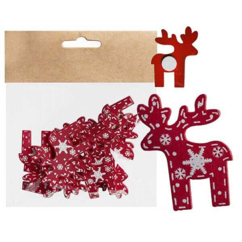 Hópelyhes piros rénszarvas dekor - öntapadós fa 4 cm - 12 darabos