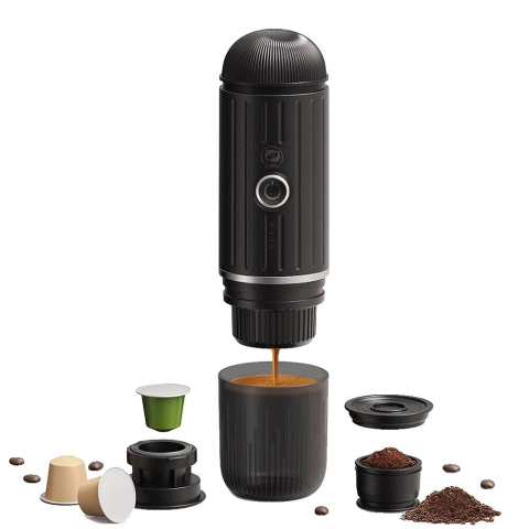Hordozható Eszpresszó Kávéfőző - Bárhol, bármikor friss kávé! ☕ Ez a kompakt és könnyű hordozható eszpresszó kávéfőző tökéletes választás utazáshoz, kempingezéshez vagy akár az irodába. Kétféle üzemmódjának köszönhetően (kávépor és NES kapszula kompa...