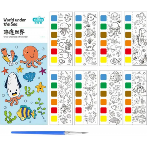 1 kép Hordozható képes festőkönyv vízfestékkel - vízalatti világ