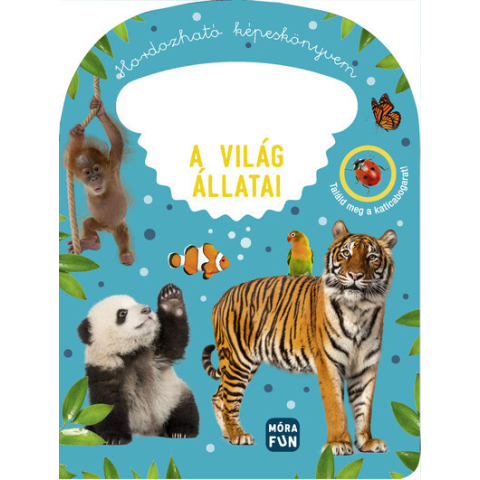 A fáradhatatlan csöppségek kedvence lesz ez a kis méretű képeskönyv, amelyet a fülénél fogva bárhová magukkal vihetnek. Amíg a kicsik a katicabogarat keresik a színes képek között, felfedezik a világ állatait is.