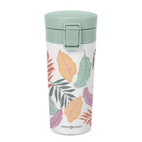 1 kép Hordozható termo bögre, levél minta, zöld tető 360ml