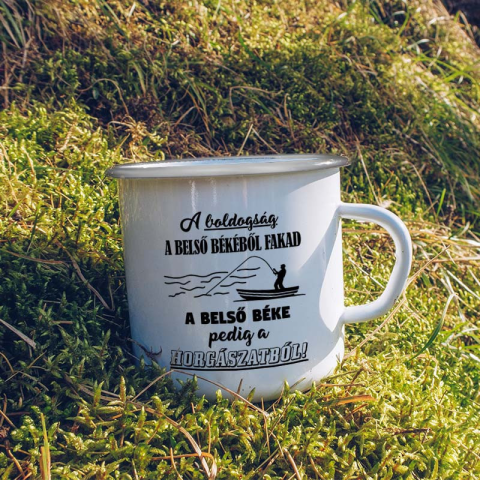 Pecás bögre, horgász belső békéje. A boldogság a belső békéből fakad, a belső béke pedig a horgászatból feliratos bögre, ami tökéletes kiegészítő a vízpartra. A horgászok életérzését tökéletesen kifejező bögre, aminél jobb ajándékot nem is adhatnál egy me