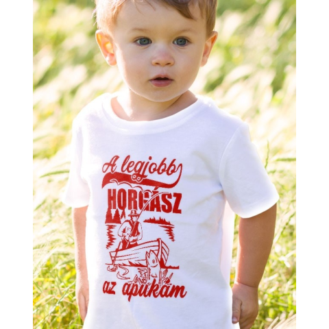 Pecás gyerek póló, legjobb horgász az apukám. Horgász gyerek póló azoknak, akiknek az édesapjuk a legjobb horgász! Lepd meg egy közös peca alkalmával, hogy gyermeketek ezt viseli. Minőségi gyerek pólóink ideálisak mindennapi viselethez és ajándéknak i