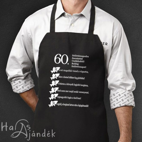 Ajándék horgászoknak, 60. születésnapra kötény. Szülinapi jókívánságokkal ellátott feliratos póló kizárólag horgászoknak. Ha van neked is olyan ismerősöd aki, most ünnepli a hatvanadik születésnapját és szabadidejében ha teheti pecázik, lepd meg ezzel a m