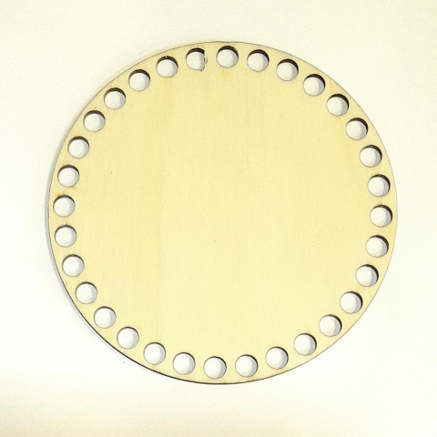 3 mm vastag rétegelt lemezből készült, körbehorgolható natúr fa tábla. Lyukak átmérője 7 mm