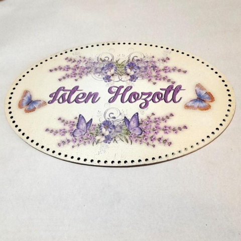 1 kép Horgolható színes ovális tábla 'Isten Hozott' felirattal, pillangós.