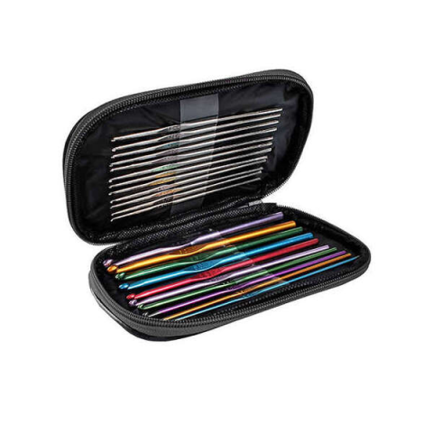 Jellemzők: Ez a horgoló készlet tökéletes lesz kezdőknek és haladóknak egyaránt. Minden megtalálható benne, ami a horgoláshoz kellhet: horgolótűk, olló, vonalzó, tűk rátétekkel, varrattartók, biztosítótűk stb. Egyes kiegészítők többféle színben vannak jelen a készletben, így még szórakoztatóbbá teszik a horgolást. A táska eco bőrből készült. Segítségével egy helyen tarthatod a a horgoló készlet összes elemét. Könnyedén beteheted a táskádba vagy