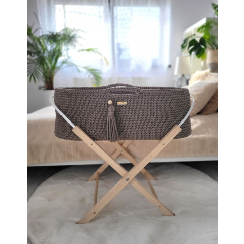 1 kép Horgolt mózeskosár állvánnyal - mokka