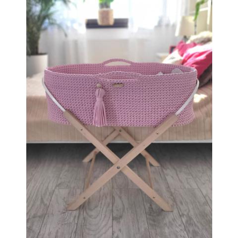 1 kép Horgolt mózeskosár állvánnyal - rózsaszín