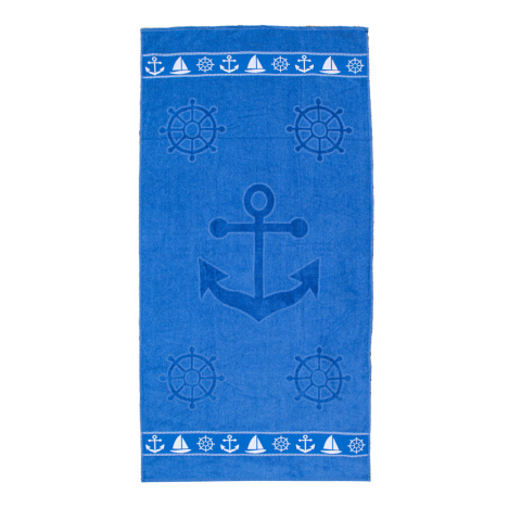 Közeleg a nyári vakáció a vízparton. A modern horgonyos strandtörölköző 100% pamutból készült, nagy, 400 g/m2 grammsúllyal, mely tökéletes nedvszívó képességet és puhaságot garantál. A törölköző kék színe a strandon tökéletes. A horgony motívuma a kék árnyalatával tökéletesen illik a meleg nyári napokra. A 70x140 cm-es törölköző praktikus mérete elegendő elegendő napozáshoz vagy hidegebb idő esetén be is takarhatja az egész testét.A törölköző