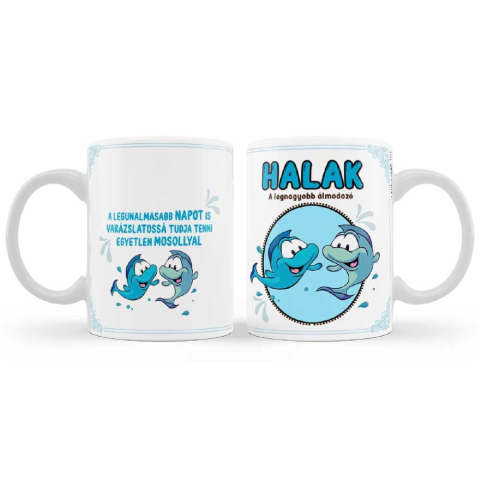 Anyaga: kerámia Űrtartalom: 3 dl Mosogatógépben mosható Mikrohullámú sütőben használható Ez a bögre tökéletes választás, amely egyben használati tárgy is és személyre szabott ajándék is. Halak: a legnagyobb álmodozó. A legunalmasabb napot is varázslato