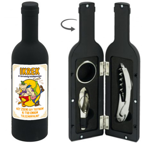 Horoszkópos ajándék Ikrek csillagjegyű ember számára, aki a társaság középpontja A szett anyaga: fém és műanyag A szett tartalma: - Dugóhúzó: Praktikus és könnyen használható bornyitó, amellyel egyszerűen kibonthatod kedvenc borodat.