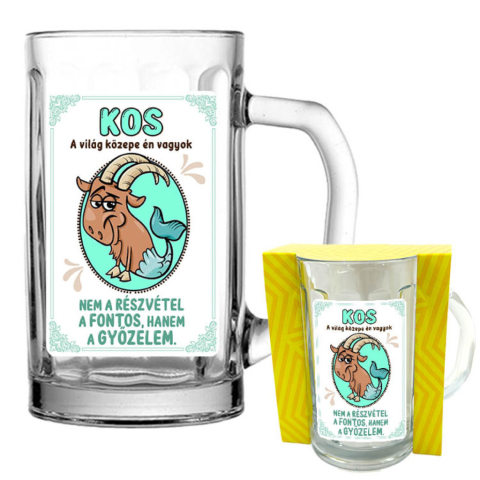 Horoszkópos ajándék Kos csillagjegyű ember számára, aki a világ közepe. Mottója: Nem a részvétel a fontos, hanem a győzelem. Anyaga: üveg Űrtartalom: 3dl, 5dl (+1100 Ft)