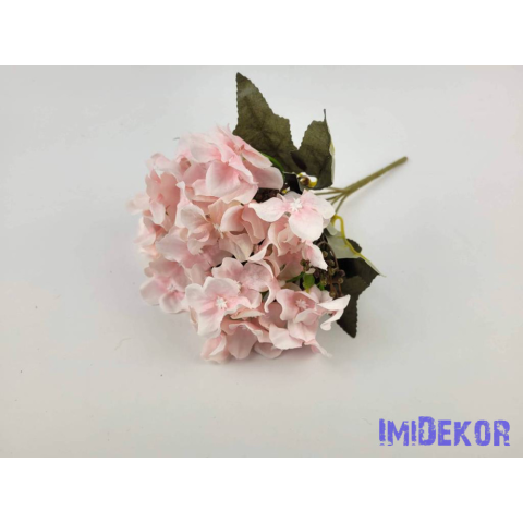 Hortenzia 5 ágú selyem csokor 26 cm - Halvány Rózsaszínes